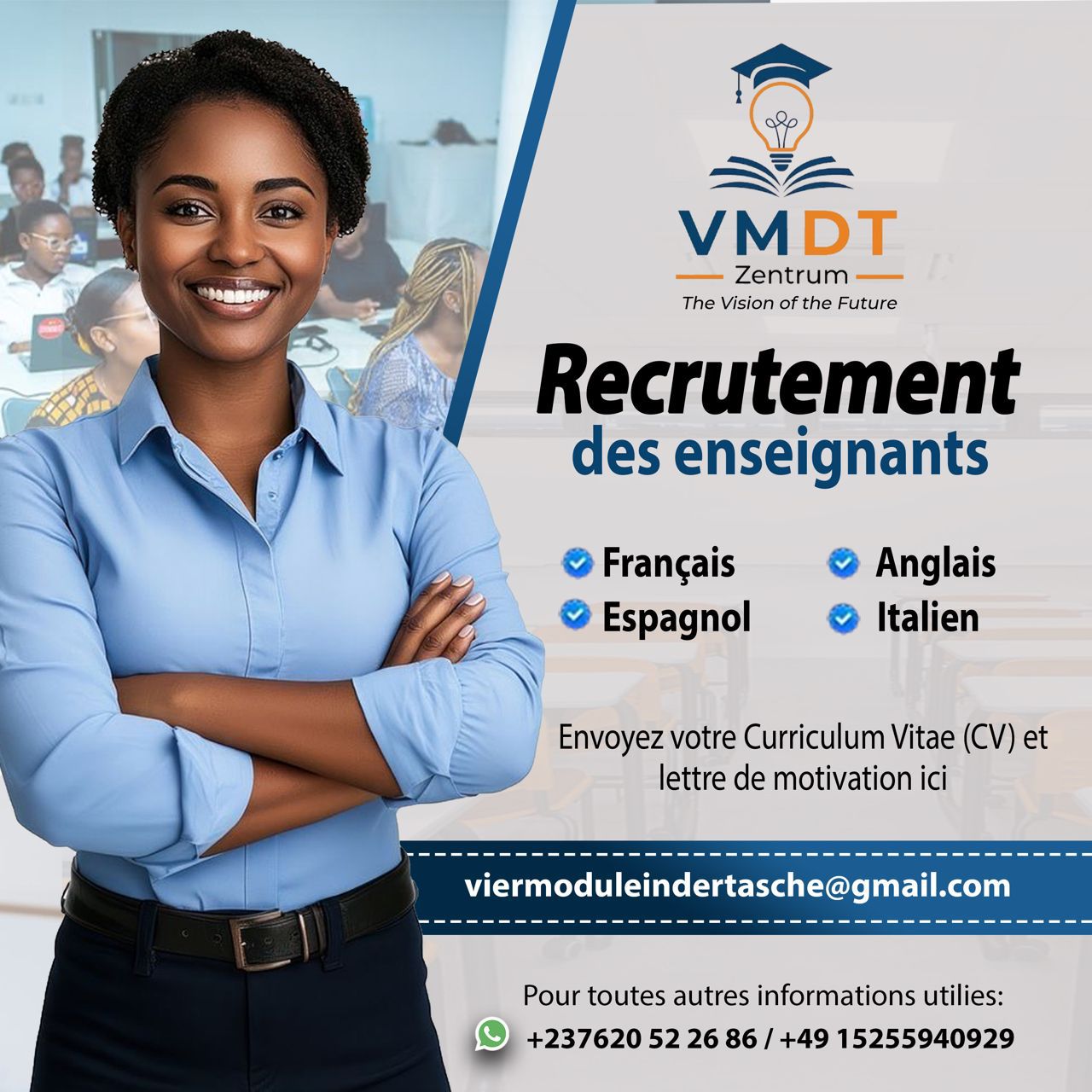 Le Centre Linguistique VMDT Zentrum ouvre ses portes pour le recrutement des enseignants qualifiés dans les langues :